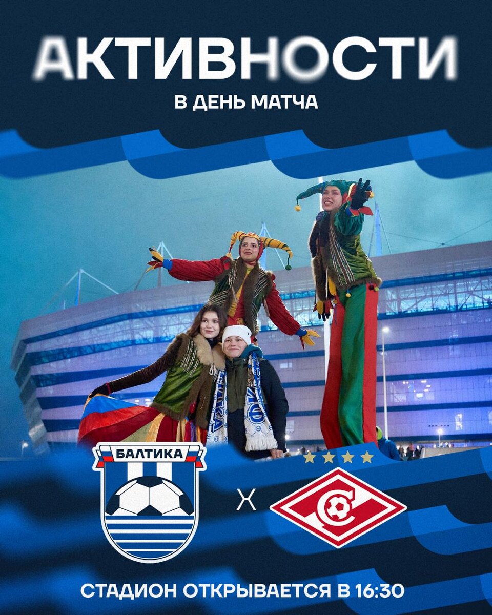 БАЛТИЙСКИЕ АКТИВНОСТИ НА РОСТЕХ АРЕНЕ 💙 К матчу со «Спартаком» мы приготовили для вас множество активностей. Они расположатся по периметру стадиона и в чаше арены 🎉 Кратко о том, что вас ожидает: ➡️ Развлечения у первого и второго гейта с занятиями по душе! Отличное начало вечера гарантировано; ➡️ Конкурс от Kitfort — угадай счёт первого тайма и забери крутой приз на секторе B129; ➡️ На сцене возле D119 выступит группа «Hit men bass»; ➡️ Кикер на С124 и на С345; ➡️ В VIP-ресторане «Королевская оптика» предложит бесплатную профессиональную чистку очков всем желающим; ➡️ Зона наших друзей из БЕТСИТИ в VIP-ресторане и их лототрон на В133; ➡️ Зона видеоигр от CyberX на секторе D114; ➡️ Выставка авто на первом гейте. И это далеко не всё! Приходите как можно раньше: гейты начнут свою работу уже в 16:30 💙 🎟️ БИЛЕТЫ НА «СПАРТАК»