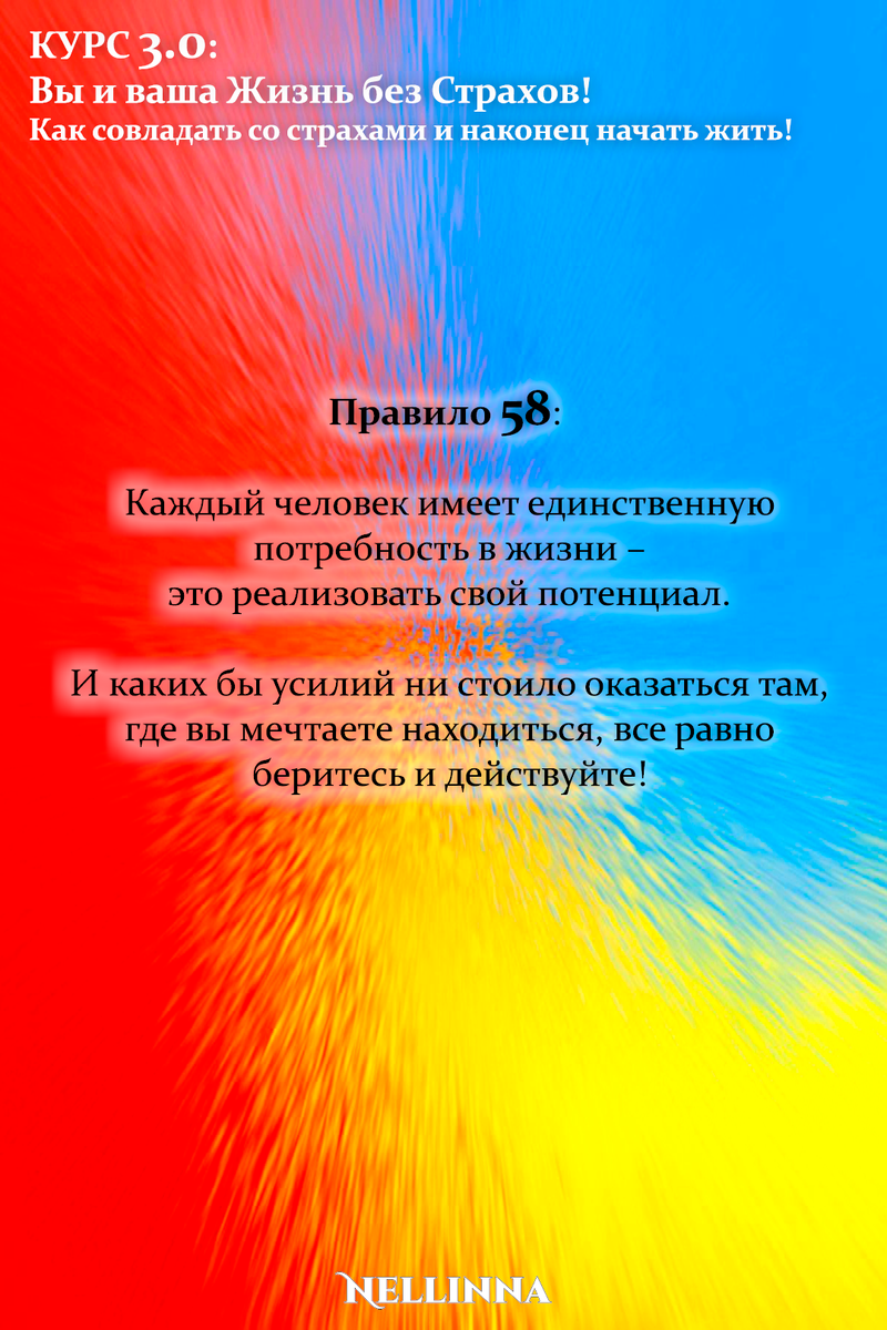 Продолжение - Принцип 58: И если вы живете таким образом, день за днем, шаг за шагом, вам открывается понимание, что это и была ваша дорога к вашим мечтам, и вы уже совсем рядом с ними. А если оставаться в постоянной близости с вашей мечтой, то можно идти куда угодно и делать что угодно, не испытывая страха, т.к. она будет всегда с вами. Чтобы не пропустить следующую публикацию – Подписывайтесь! И делитесь полезной и бесплатной информацией! #курс #тренинг #обучение #практикум