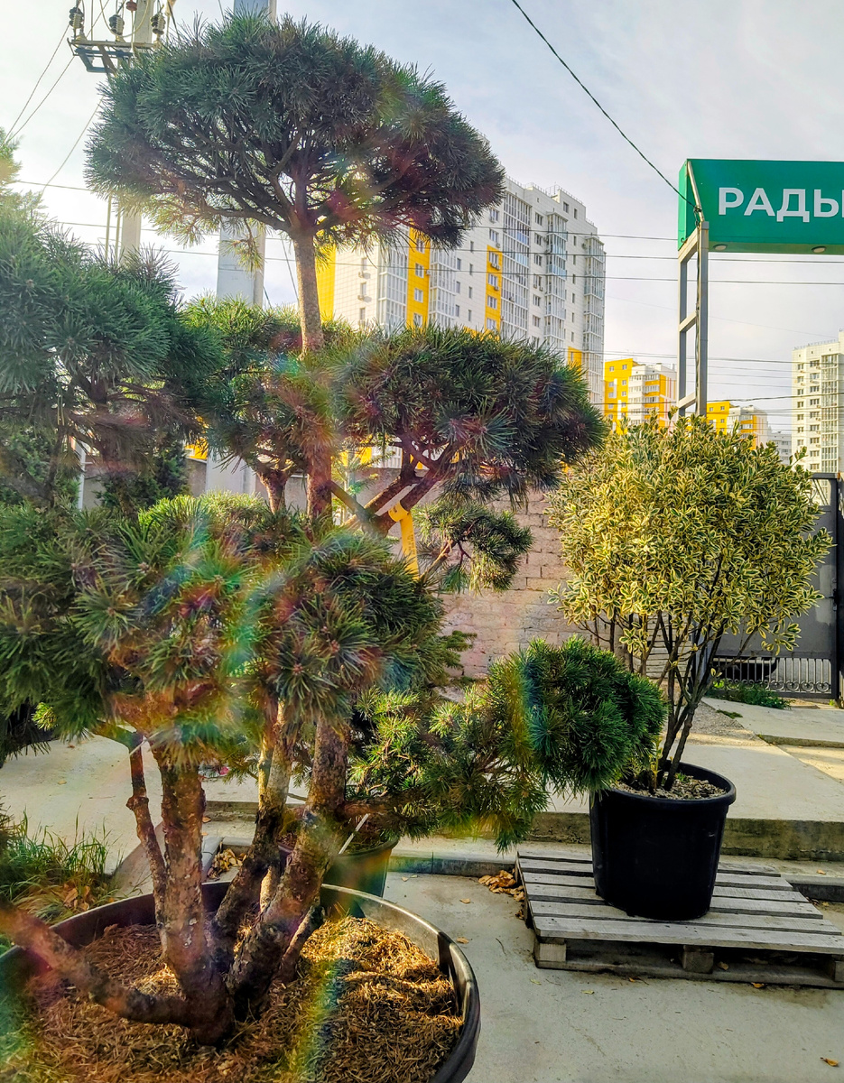 На входе вижу величественное хвойное растение, умело превращённое в живую скульптуру в стиле Бонсай/Ниваки.