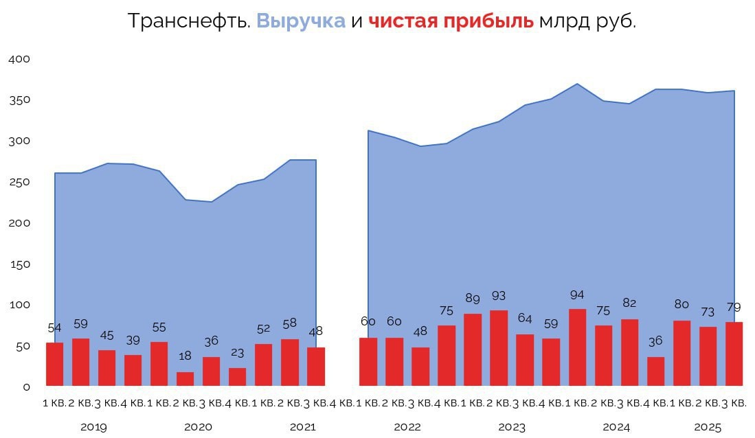⛽️ Транснефть уверенно идет к 190 руб. дивидендов По итогам III кв. компания показала символический прирост выручки. Такая же картина за 9 мес. Объемы добычи нефти с начала года были меньше, чем годом ранее. Однако это компенсировалось повышенным тарифом. Компания сохраняет себестоимость на уровне прошлого года — это позволяет показать прирост квартальной EBITDA почти на 8% — до 142 млрд руб. С начала года EBITDA выросла на 4%. Кубышка сократилась с 243 до 181 млрд руб. по сравнению с прошлым кварталом. Она принесла компании 25 млрд руб. — чуть ниже прошлых кварталов. Чистая прибыль сократилась до 79 млрд руб. (-3% г/г). Дивиденды компания платит на основе скорректированной чистой прибыли, которая увеличилась на 10% г/г — до 66 млрд руб. По нашим оценкам, за 9 мес. компания заработала 143 руб. дивиденда, а в IV кв. на фоне роста добычи в России дивиденд может достигнуть 190 руб. (14,5% дивдоходности). Операционный денежный поток за квартал составил 138 млрд руб. С начала года ко