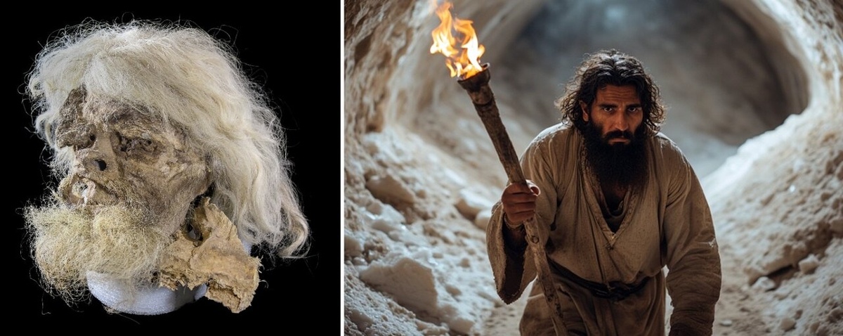 «Соляные люди» — удивительные мумии, обнаруженные в соляных шахтах Чехрабад на северо-западе Ирана. Зимой 1993 года шахтеры наткнулись на тело с длинными волосами и бородой. Находка включала часть ноги внутри кожаного сапога, золотую серьгу в ухе, три железных ножа, шерстяные короткие штаны, серебряную иглу, пращу, части кожаной веревки, точильный камень, грецкий орех, глиняные черепки, фрагменты ткани. Тело было погребено в середине туннеля длиной примерно 45 метров. В 2004 году шахтёры нашли вторую мумию. Во время археологических раскопок в 2005 году были обнаружены останки еще двух мужчин. К 2010 году найдены останки 6 людей, большинство из которых погибло в результате обрушений в шахтах – и соль сделала своё дело: тела законсервировались. Согласно радиоуглеродному анализу, «Соляной человек №1» жил примерно 1700 лет назад, во времена Сасанидской империи. На момент смерти ему было 35-40 лет. Исследователи установили и группу крови – B+. Золотая серьга в левом ухе указала на то, что м