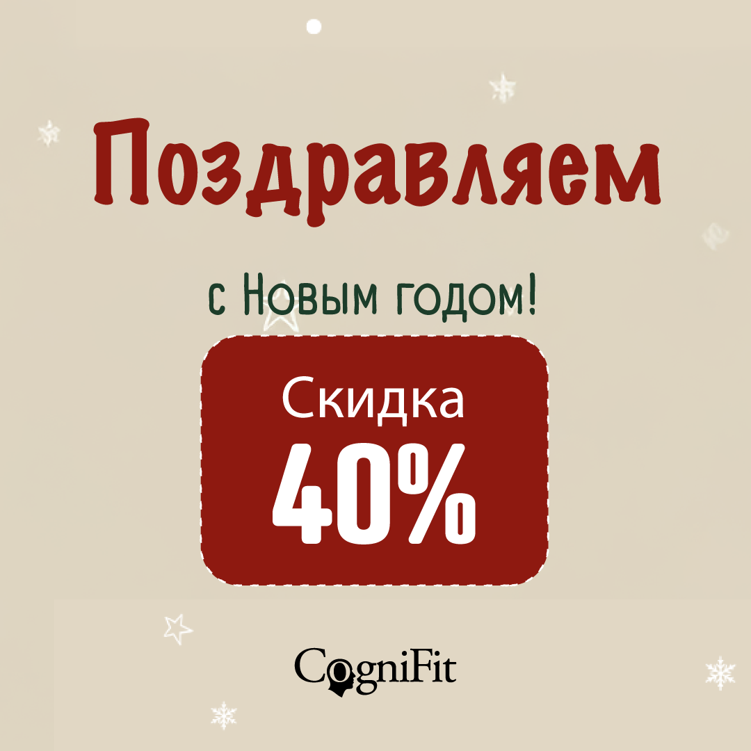 С Наступающим Новым годом от всей команды CogniFit! Пусть 2026 принесёт ясность уму, тепло в сердце и радость в каждый день. А мы дарим вам –40% на всё - для бодрого старта нового года!🎁 ПРОМОКОД: HOLIDAYS25