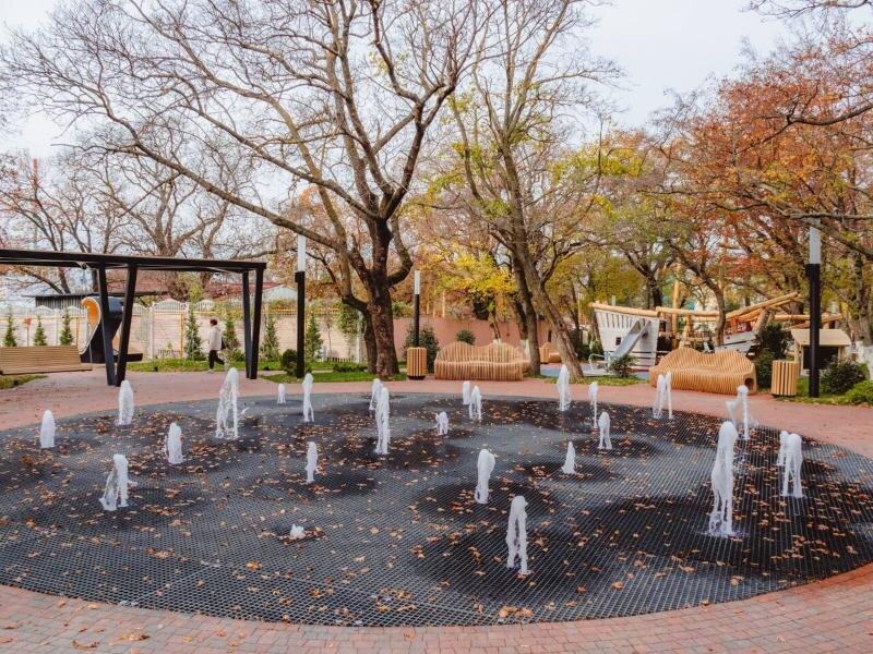 В числе ключевых объектов — уютная детская площадка, фонтан, декоративный водопад и необычная интерактивная зона в виде большого уличного пианино.