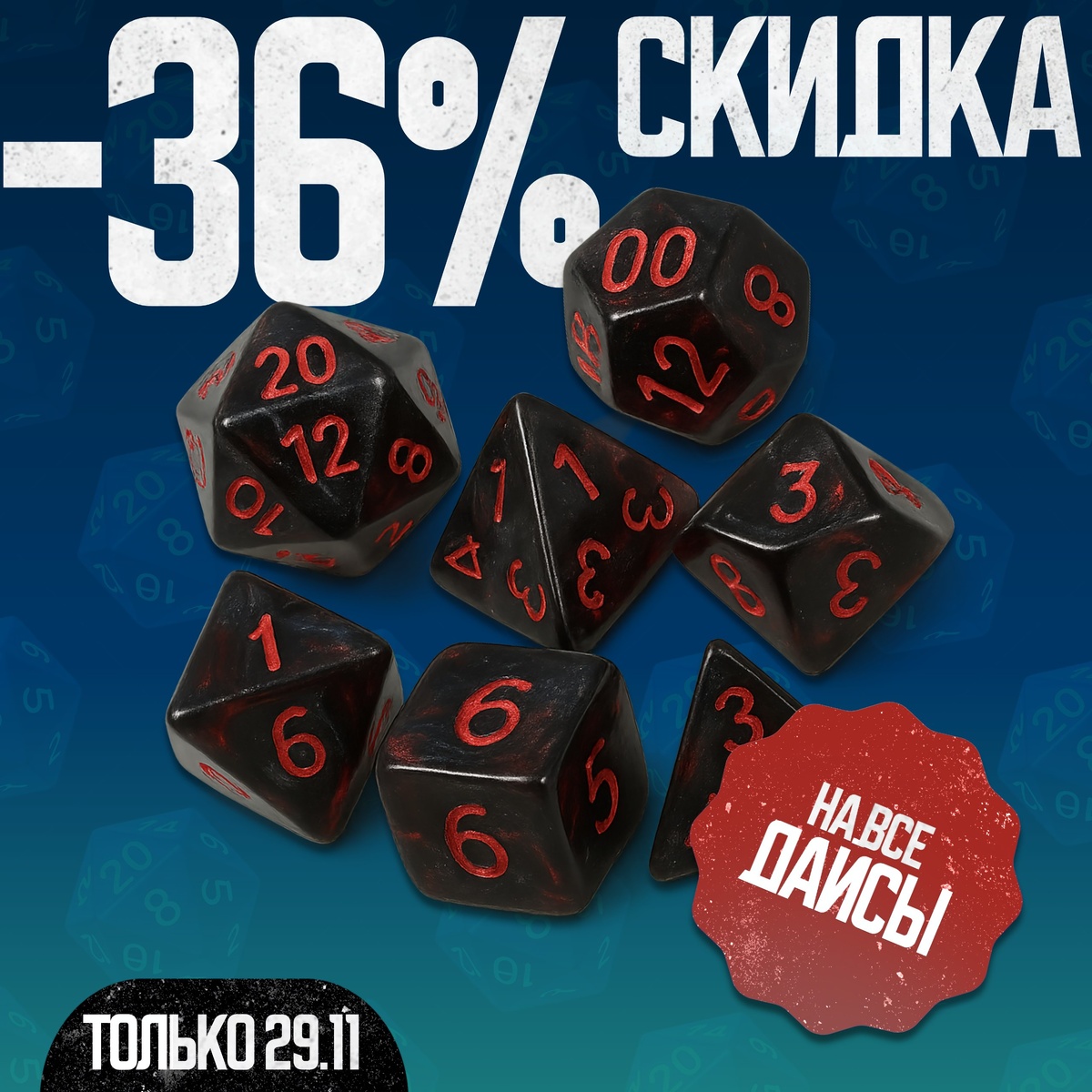 Уже завтра стартует акция на все дайсы! 🎲 Только 29.11 в офлайн-магазине PandaSale на Суворова, 52а — дарим скидку 36% на все дайсы. Как получить скидку: 1. Подписаться на нашу группу ВК или телеграм-канал 2. На кассе сказать промокод BlackPanda 🐼 Важно: — Скидка действует только в магазине на Суворова, 52а — Не суммируется с личной скидкой — Товар должен быть в наличии Приезжайте завтра выбирать идеальные дайсы для своих партий (или просто для коллекции) — пусть каждый бросок будет удачным! 💥 #PandaSale #PandaAction #PandaBlack