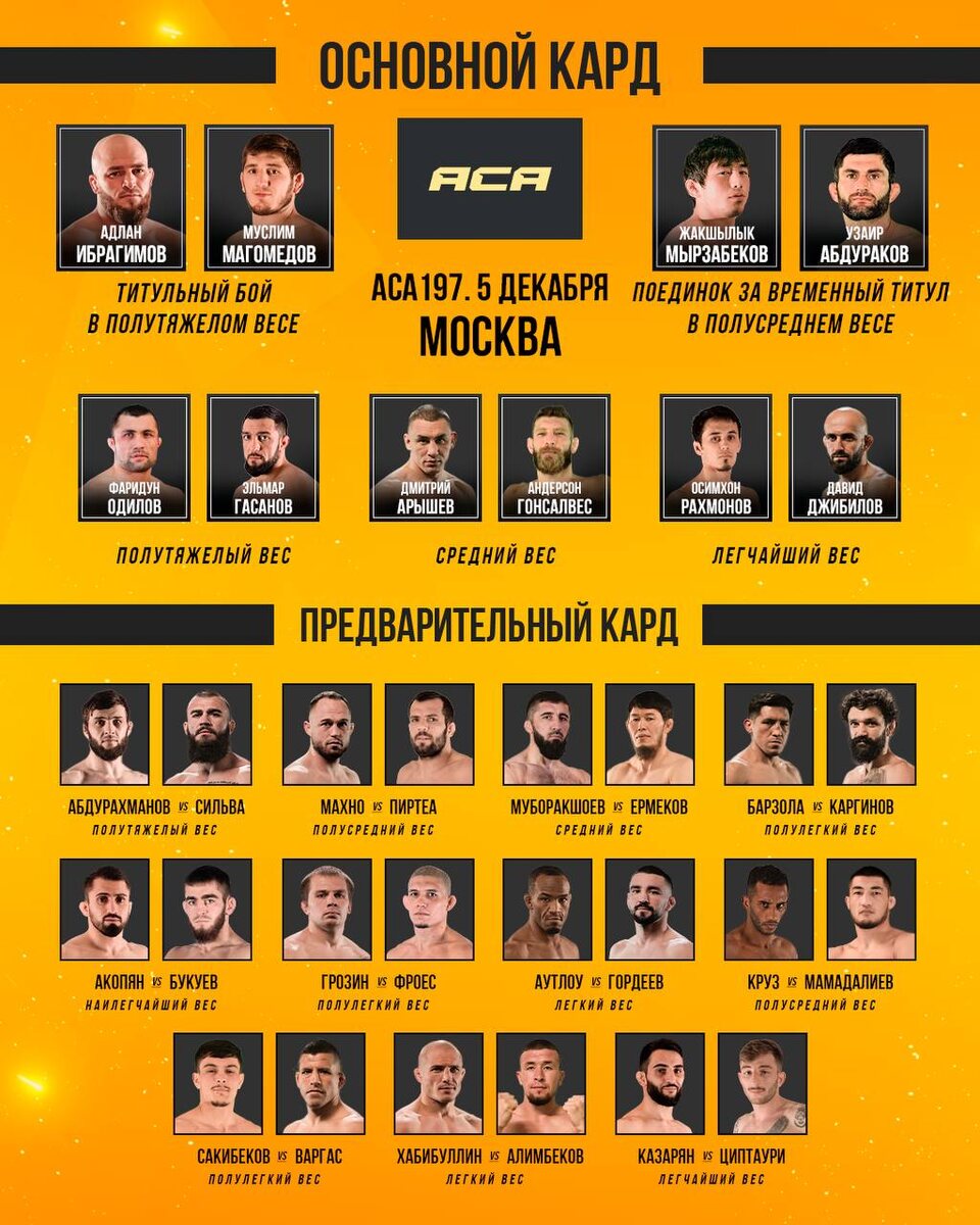 📋Файт-кард предстоящего (5 декабря) турнира АСА 197 | Москва