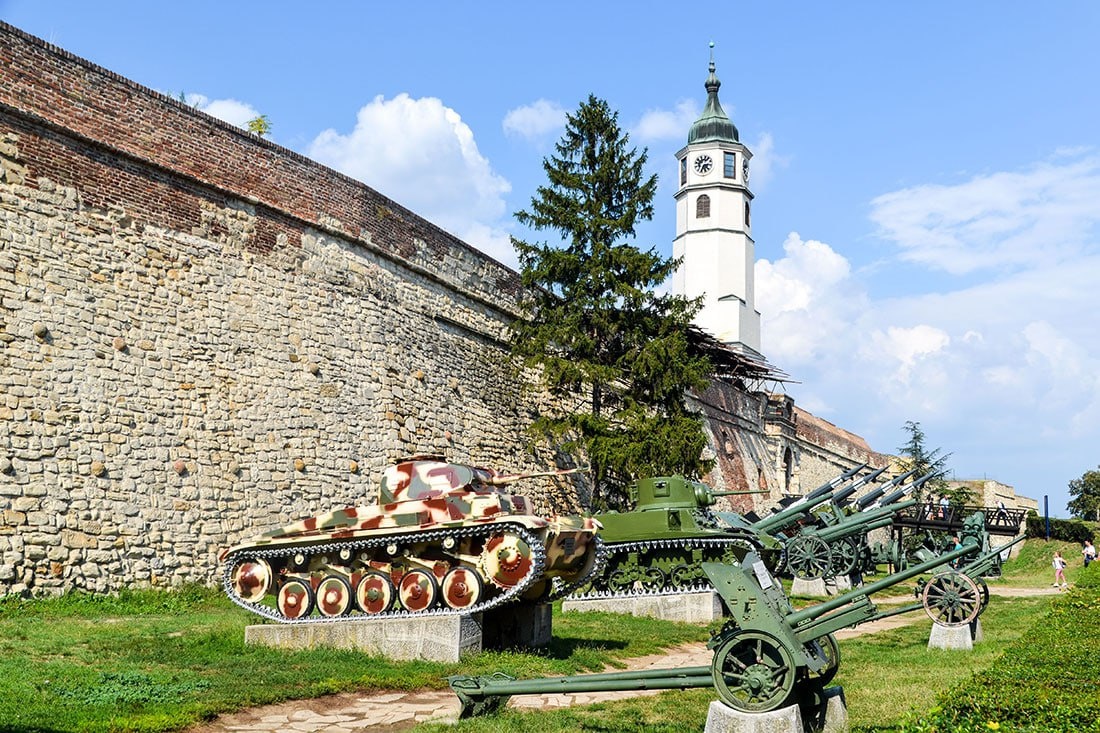 Исследуя Белградскую крепость, вы можете натолкнуться на стоящую у одного из валов военную технику. Там есть дезактивированные мины, немецкие танки и торпеды, а также старинные пушки, все еще вооружающие огневые точки на внешней стене. Все это принадлежит Военному музею, который размещается в крепости с 1878 года. В галереях музея хранится коллекция древнегреческого и древнеримского оружия, которому насчитывается уже более 2000 лет. Есть здесь щиты, топоры, мечи и доспехи, выкованные на Балканах и в Западной Европе во времена средневековья. В галереях с современными экспонатами вы увидите НАТОвское военное оборудование 1999 года, включая захваченный американский армейский внедорожник Хамви и фрагменты кассетных бомб. Проще говоря. Сербия