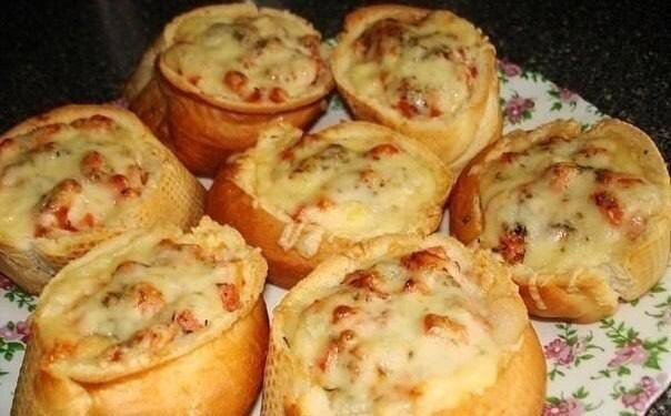🍕 ИНГРЕДИЕНТЫ 🍕 -батон- 1шт -помидор- 2шт -колбаса- 150-200гр -сыр- 100гр -майонез -масло сливочное 🍽 ПРИГОТОВЛЕНИЕ 🍽 -Нарезать хлеб на куски толщиной 5-7см -Выбрать мякоть, оставив дно и бока -На дно каждой чашечки положить кусочек масла, затем начинку: колбаса и помидор, порезанный мелким кубиком, майонеза и в разогретую до 200град духовку на 15мин -Достать и посыпать сыром, отправить еще на 3мин в духовку, дать сыру расплавиться