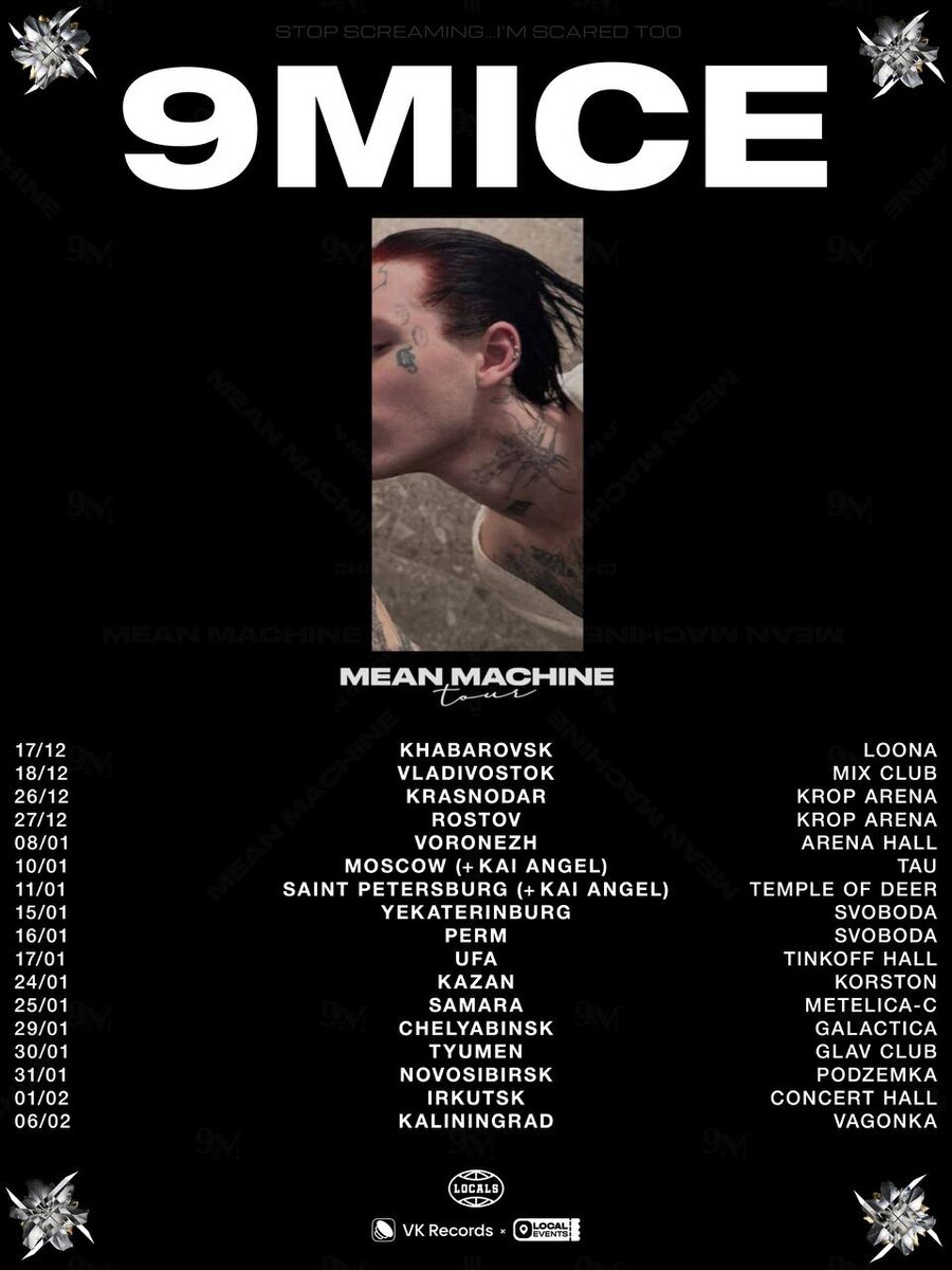 🎫 – 9mice: «MEAN MACHINE TOUR» зимний тур по России 🎤 – 9mice + Kai Angel в Москве и Санкт-Петербурге 📍 – 17 городов: Хабаровск, Владивосток, Краснодар, Ростов-на-Дону, Воронеж, Москва, Санкт-Петербург, Екатеринбург, Пермь, Уфа, Казань, Самара, Челябинск, Тюмень, Новосибирск, Иркутск, Краснодар 🗓 – 17 декабря 2025 – 6 февраля 2026 💵 – от 1 549 руб. 🔗 – билеты (16+) #концерты #билетынаконцерт #9mice #kaiangel #viperr #meanmachine #хабаровск #владивосток #краснодар #ростовнадону #воронеж #москва #санктпетербург #екатеринбург #пермь #уфа #казань #самара #челябинск #тюмень #новосибирск #иркутск #краснодар 👉 Список концертов: ноябрь • декабрь @mainstreamusic