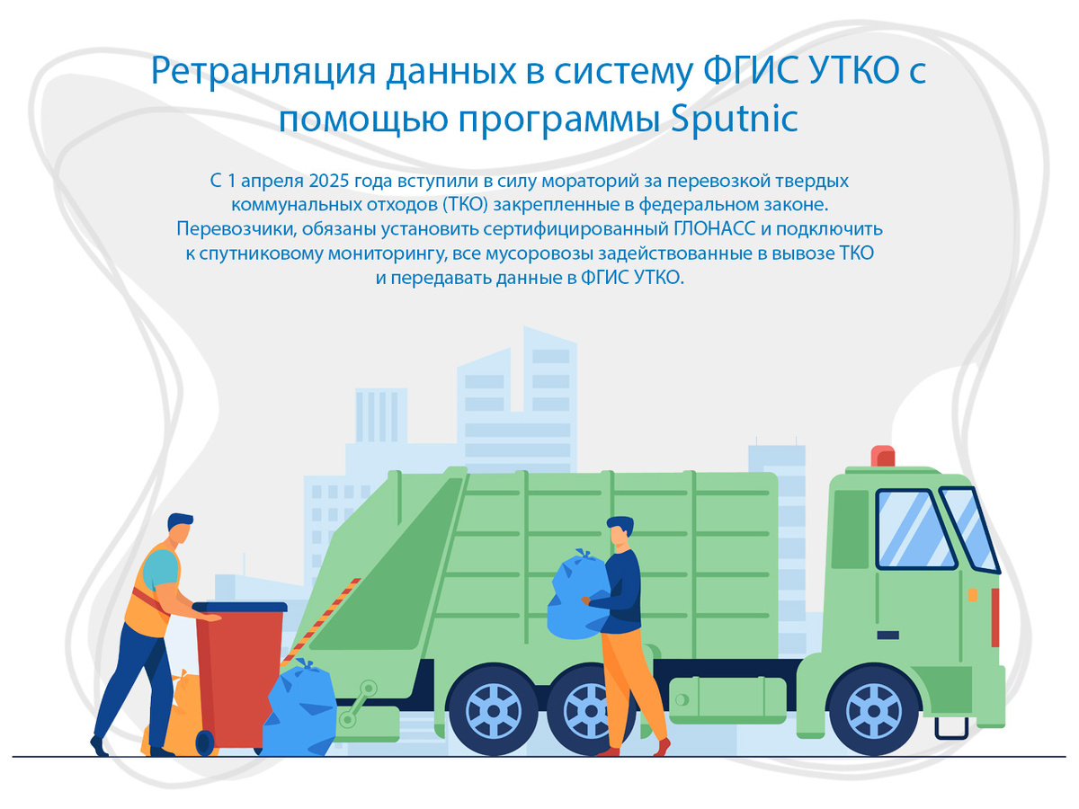 Сфера вывоза и утилизации отходов остается одной из самых уязвимых - здесь регулярно возникают проблемы с несанкционированными сбросами, фиктивными рейсами, нарушениями графиков и неточным учетом топлива. Все это напрямую влияет на экологическую безопасность и эффективность работы отрасли. Программа Sputnic внедряет спутниковый мониторинг, который позволяет контролировать работу мусоровозов в режиме реального времени. Для этого используются: Данные автоматически передаются в ФГИС УТКО - федеральную государственную информационную систему учета движения ТКО. Благодаря этому точно фиксируются маршруты, время загрузки и факты выгрузки отходов. Система становится прозрачной как для операторов, так и для контролирующих органов. С 1 апреля 2025 года использование ГЛОНАСС и передача данных в ФГИС УТКО стали обязательным требованием для всех мусоровозов, работающих с твердыми коммунальными отходами. Подробную информацию об установке ГЛОНАСС-GPS оборудования и настройке ретрансляции данных в ФГИ