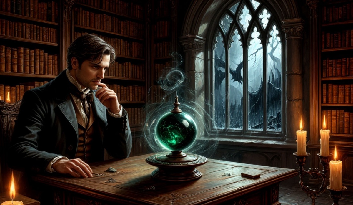 Ледяные иглы дождя били в высокие витражи, заставляя лики каменных ангелов в нишах струиться кровавыми и синими слезами. Ветер выл в печных трубах старого замка, словно души предков, не находившие покоя. Артур стоял у камина, в руках он сжимал тяжелый, холодный предмет — тот самый артефакт, что достался ему по завещанию загадочного дядюшки-алхимика. Это был не просто волчок от старинных часов. Это был Ключ Ветров, вырезанный из черного нефрита, покрытый потускневшими серебряными рунами. Дядюшка в своем послании предупреждал: «Не вращай его без нужды, ибо разбудишь не спящих, а ждущих». Но Артур был сыном своего века, прагматиком, не верящим в сказки. С насмешкой он провел пальцем по зазубренному краю. И в тот же миг огонь в камине погас, поглощенный внезапной тьмой. Воздух застыл, стал густым, как сироп. Тишину разрезало тихое позвякивание — где-то на одной из бесчисленных потайных лестниц замка упала цепь от люстры. Он почувствовал, как по спине пробежал ледяной мурашек. Не страх, нет