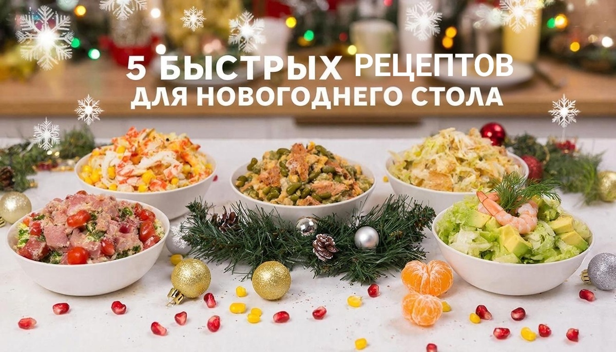 Когда до праздника остаются считанные часы, а стол ещё не накрыт, на помощь приходят простые салаты из готовых ингредиентов. Никаких долгих варёных овощей и сложных заправок — только свежесть, хруст и праздничный вкус.