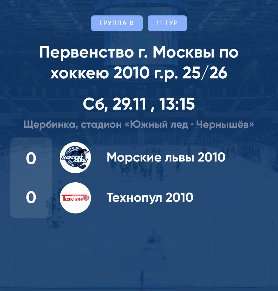 🏒 Завтра важный домашний матч "Морских львов"! Дата и время: 29 ноября, суббота, 13:15 Место: стадион «Южный лед · Чернышёв», Щербинка Соперник: команда «Технопул 2010» 📊 На данный момент мы занимаем 10-е место в турнирной таблице с 7 очками (3 победы, 7 поражений). Команда в процессе перестройки: усиление состава и корректировка тактической схемы. «Технопул» смотрится значительно сильнее — 6 побед, 2 поражения и 12 очков, 6-е место. ⚡ Это отличный шанс для наших ребят показать характер и улучшить турнирную позицию! Поддержим наших молодых львят в этот важный матч! Вперёд, Морские львы! Только победа! 🦁🏆