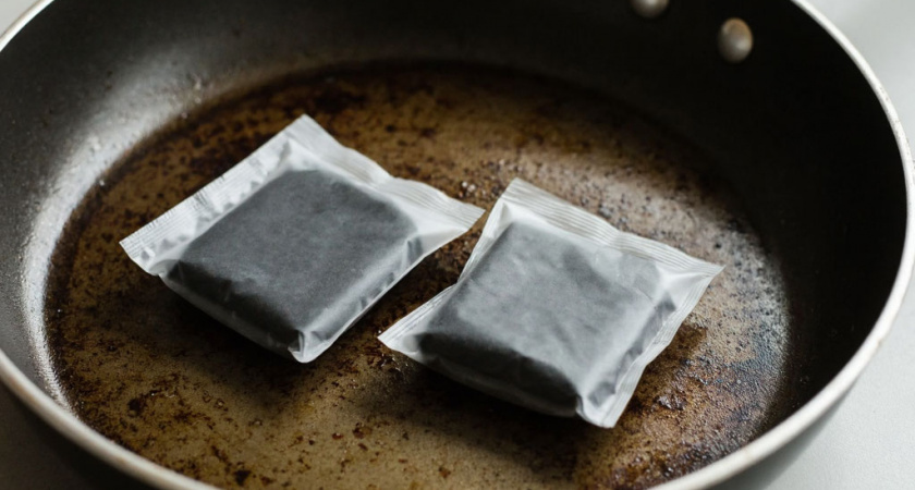 Два пакетика заливаю кипятком, и сковородка как новая: от жира и нагара не остается и следа