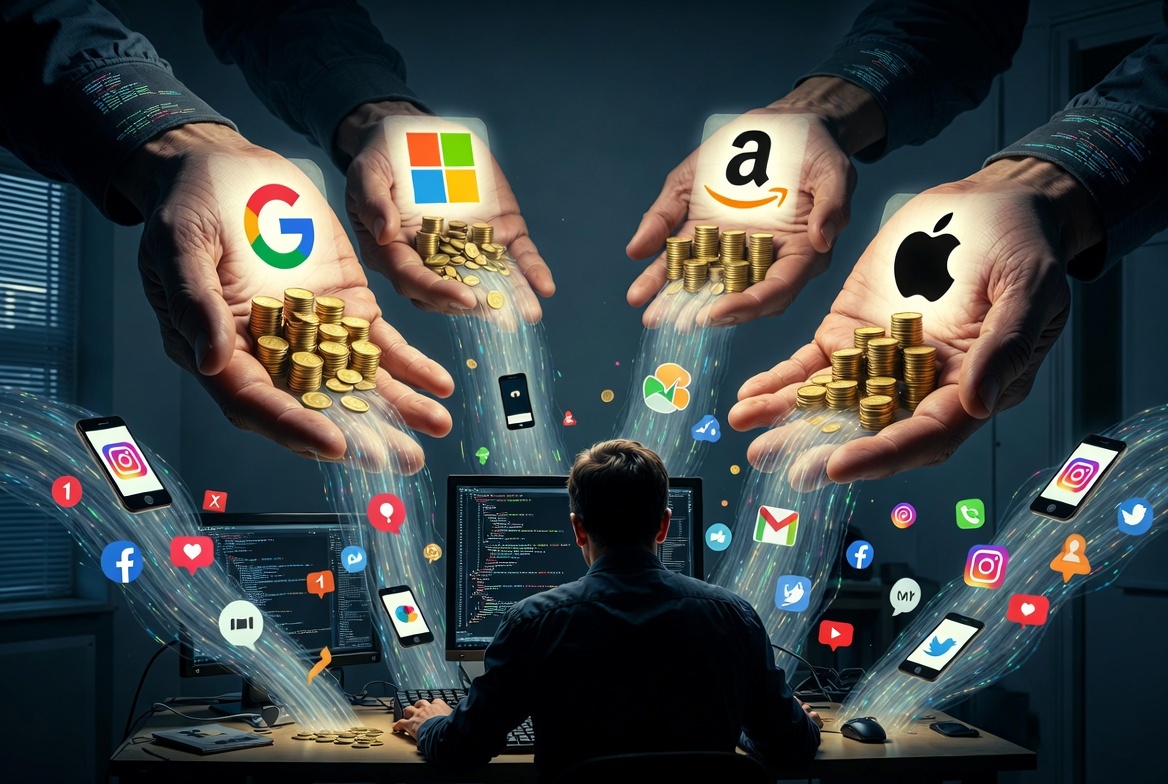 Каждый день вы открываете любимые приложения, листаете ленту, смотрите ролики, ставите лайки, заказываете еду, слушаете музыку. Всё кажется привычным и бесплатным. Но вот что интересно: каждое ваше действие - это деньги. Большие деньги. Только не ваши. Сегодня я расскажу, как IT-гиганты превращают обычных пользователей в золото, почему именно вы - самый ценный продукт, и зачем компании так отчаянно борются за ваше внимание. Вы - товар. Да, именно вы Звучит грубо, но правда проста: крупнейшие технологические компании зарабатывают не на сервисах, а на вас. Ваши клики - это данные. Ваши предпочтения - это поведенческие модели. Ваше внимание - это валюта. Каждый раз, когда вы читаете статью, лайкаете фото или задерживаетесь на видео, алгоритм фиксирует: что вы любите, сколько времени проводите, что вас раздражает, что вызывает желание купить. Эти данные продаются рекламодателям в красивой упаковке и называются «таргетированной рекламой». И знаете что? Она работает. Бесплатные