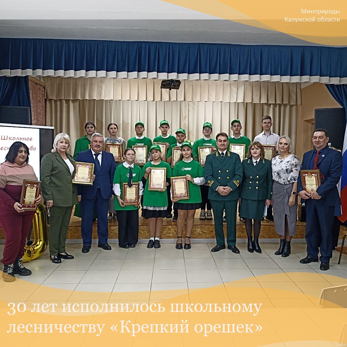 30 лет исполнилось школьному лесничеству «Крепкий орешек» Школьное лесничество «Крепкий орешек» отметило 30-летний юбилей в Серпейской средней школе Мещовского округа. Лесничество было создано в 1995 году и вот уже более 20 лет успешно работает под руководством Татьяны Филоновой. С первых лет юные лесоводы активно участвовали в выращивании елей и сосен в школьных питомниках, что стало важной частью их экологического образования. За годы работы участники лесничества провели множество природоохранных акций: «Из малого жёлудя – могучий дуб», «Ёлочка, живи!», «День леса». Ребята активно участвуют в конкурсах и слётах разного уровня, где регулярно занимают призовые места. За время работы коллектив достиг значительных успехов в различных конкурсах и соревнованиях: Многократные победы в конкурсе «Лучшее школьное лесничество Калужской области», призовые места в региональном этапе Всероссийского юниорского лесного конкурса «Подрост».