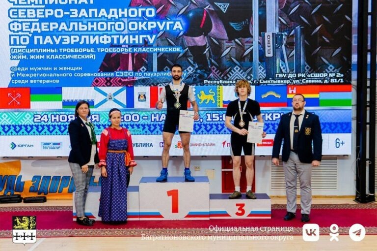 В Багратионовском округе отметили новое спортивное достижение: местный спортсмен Сергей Щетков успешно выступил на чемпионате Северо-Западного федерального округа по пауэрлифтингу. Соревнования проходили в Сыктывкаре, где собрались сильнейшие атлеты региона. Участникам предстояло проявить выносливость, технику и физическую подготовку в одном из самых силовых видов спорта. В выступлении Сергея Щеткова особенно отметили стабильность результатов и уверенность в выполнении каждой попытки. По итогам соревнований он завоевал бронзовую медаль, став одним из призёров чемпионата. Дополнительным успехом стало выполнение норматива кандидата в мастера спорта — одного из ключевых разрядов в системе спортивной квалификации. Для Багратионовского округа это достижение имеет особое значение: результат Сергея стал поводом для гордости и подтверждением высокого уровня подготовки местных спортсменов. Победа на соревнованиях такого уровня укрепляет позиции округа в региональном спорте и вдохновляет молодых