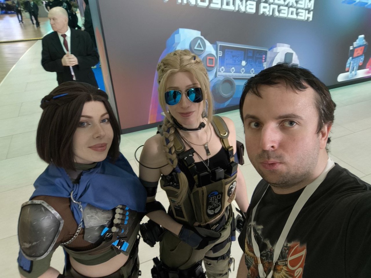 Ух, первый день был замечательным, но выставка эта больше для разработчиков игр чем для обычных посетителей. Косплееров - 4 штуки, это буквально две из них, со мной на фото и то их поставили в темный уголок. Зато, нужные связи наладил. Поиграть в игры там можно, но это все демки на 15-20мин весь видео отчет и другие крутые фото выложу позже, обязательно. :)