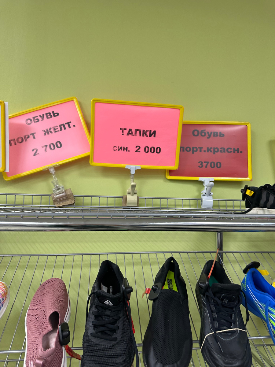 Всем моим читателям доброго времени суток 🫶 Меня зовут Оля и я очень люблю моду, гулять по секондам в поисках сокровищ, исследовать музеи и путешествовать. В прошлую субботу я была на новом завозе в секонде сети Во-ва в г. Санкт-Петербурге (филиал на Дыбенко). Сегодня, надеюсь, отправлюсь еще раз на разведку. Всю неделю я показывала актуальный завоз в секонде, а сегодня продолжим смотреть, последнюю часть того, что попалось на полках с общим ассортиментом. Завоз продолжает быть классным, поэтому смотрим новую порцию. На этот раз осталась только спортивная обувь и покажу что попалось из сумочек (с сумочками последнее время в секонде все печально, на мой взгляд). Традиционно, начнем с цен. Классные новые тапочки от скечерс. Очень люблю этот бренд, для меня их обувь одна из самых удобных. У меня есть и кроссовки и осенние ботиночки. И еще классные скечерсы. А вот эта пара от очень модного сейчас бренда asics. Причем именно сама модель очень актуальна, а сама пара в отличном состояни