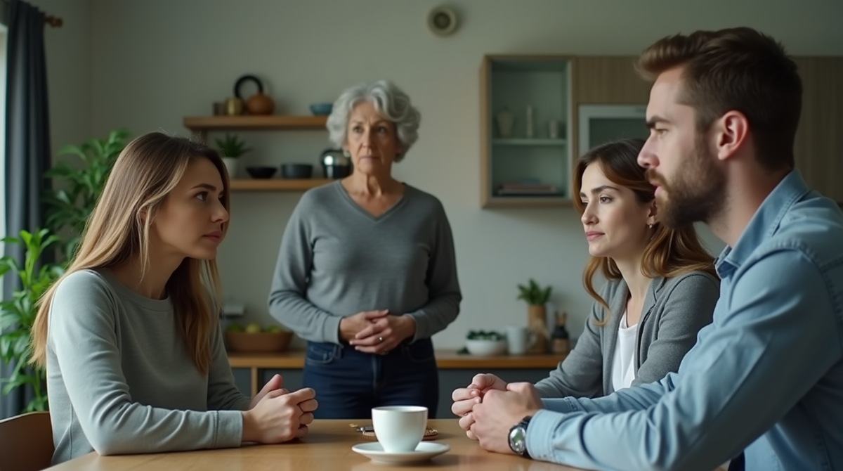 Лена замерла на пороге кухни, всё ещё держа в руках сумку с продуктами. Она только вернулась с работы, усталая, с мокрыми от осеннего дождя волосами, и меньше всего ожидала увидеть у себя дома сразу троих: свекровь, её сестру Галину и зятя Сергея, мужа Галины. Они сидели за столом, как на семейном совете, и смотрели на неё с такой трогательной заботой, что внутри всё похолодело.