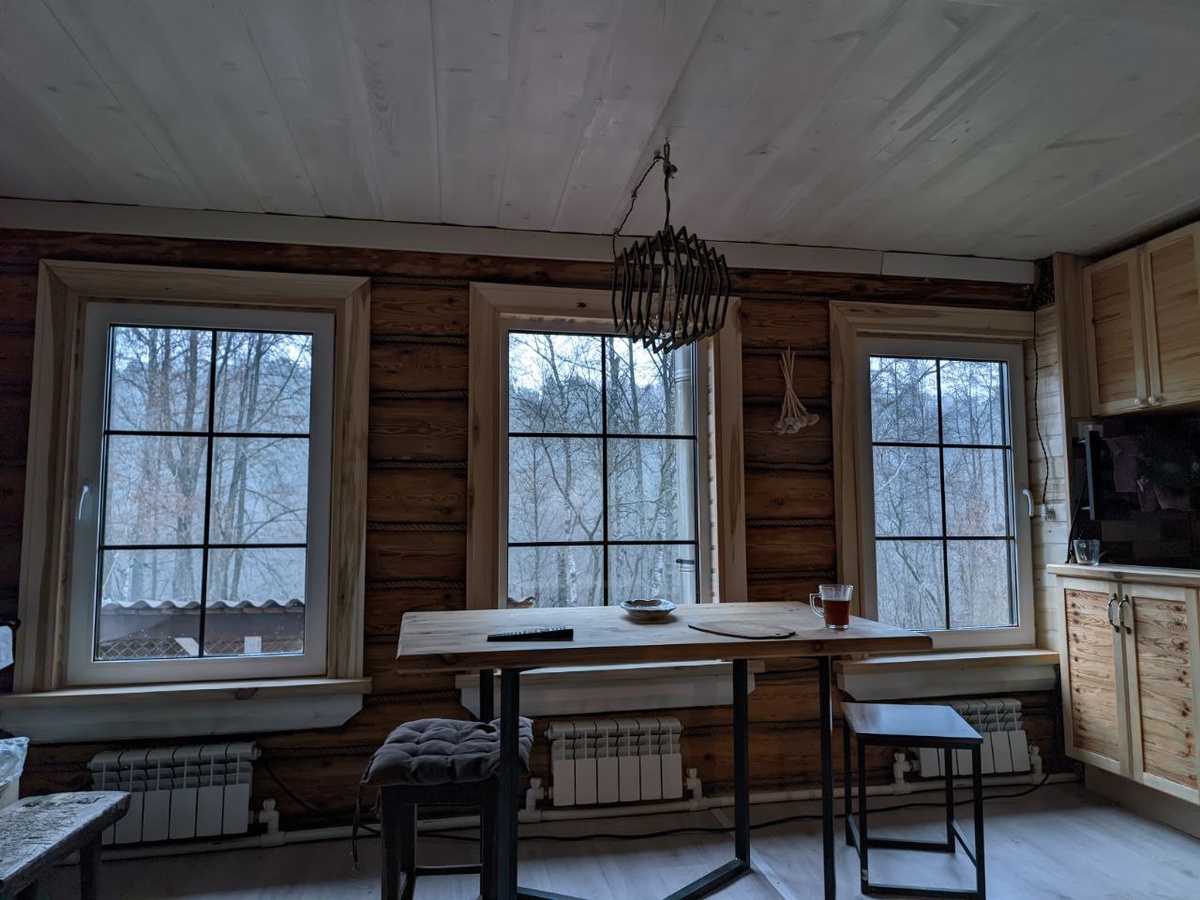 Теперь в пределах старых-новых бревенчатых стен, тщательно очищенных от старой грязи, копоти и краски, разместились прихожая, санузел, кухня-гостиная, а также техническое помещение на нижнем уровне, в бывшей подклети.