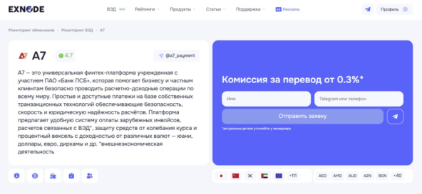 - выбор агента с фиксированной ставкой на платформе Exnode