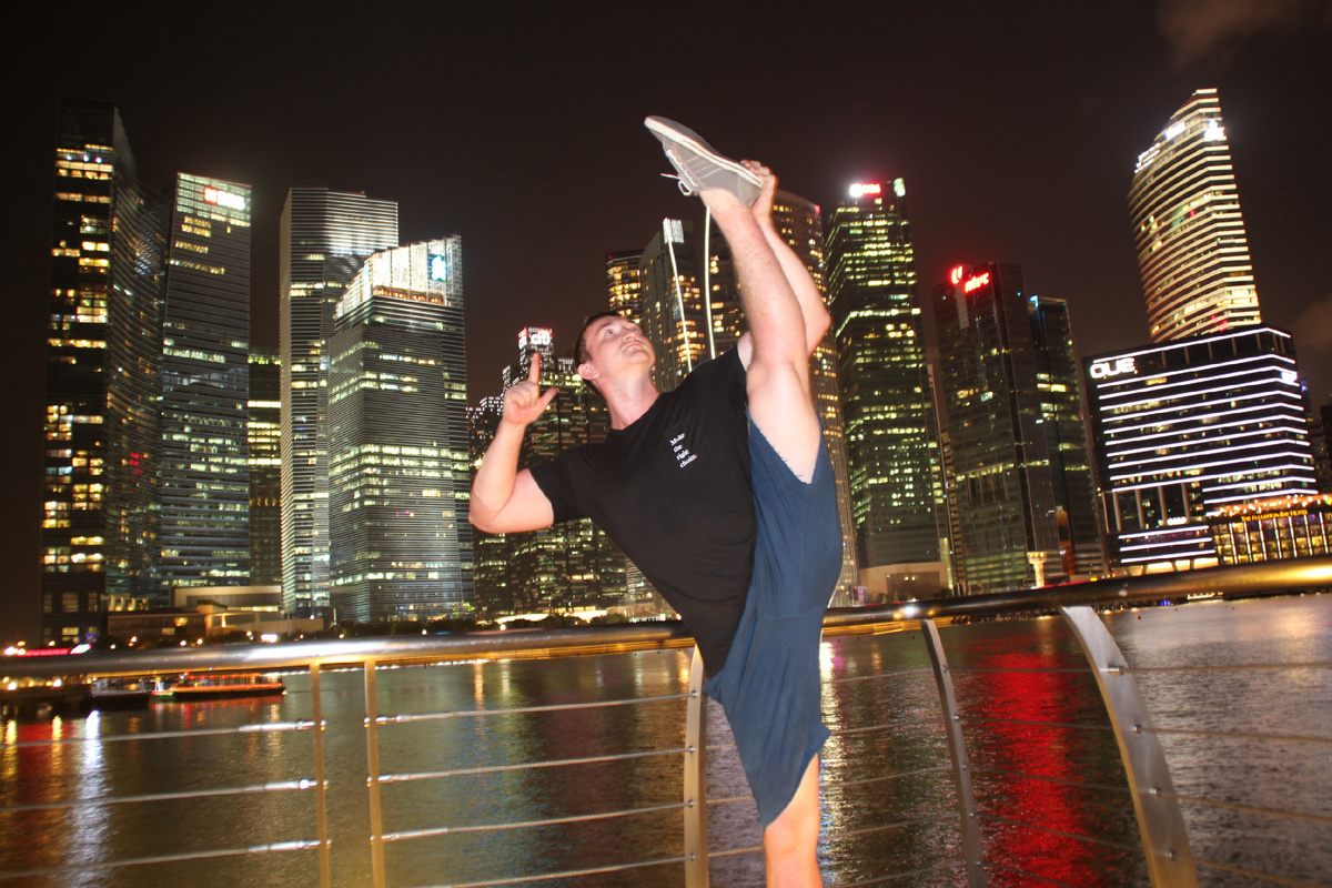 Триконасана (Поза треугольника): Из положения стоя с широко расставленными ногами, наклонитесь в сторону, вытягивая одну руку вверх, другую – вниз.
