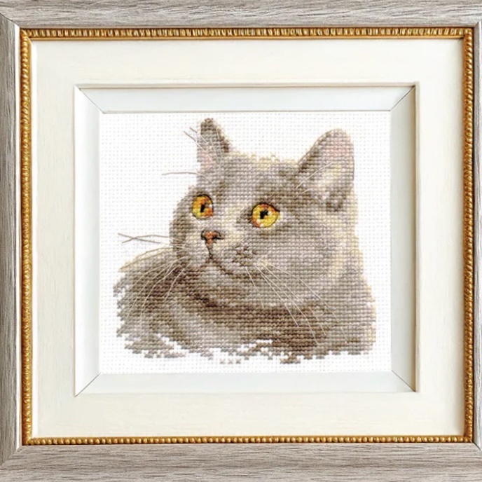 Мой вышивальный опыт всего ничего, около пары месяцев. И вот, отшив риолисовских птичек, я приступила к набору от Алисы «британский кот». Котов я очень люблю, поэтому когда я увидела серию с котиками у Алисы, я тут же стала выбирать кого же мне купить. Выбор пал на британца. Хочу отметить, что это был мой первый набор, который вышивается именно крестиками. Потому что риолисовские птички полностью были отшиты полу крестом. В общем, я конечно уже знала, что вышивать кресты надо строго в одну сторону, но так как машинальная привычка еще не наработалась, к сожалению, в этой работе я делала много ошибок. Этого красавчика я вышивала примерно неделю, по вечерам каждый день. Ошибки у меня начались с самого начала. Все банально- начала вышивать одним цветом, потом другим, и в итоге поняла что картинка то не сходится и те крестики, между которыми по схеме должно было быть расстояние в пару клеток, разлетелись друг с другом клеток на 10. Такую ошибку конечно надо было перешивать. Нитки стар