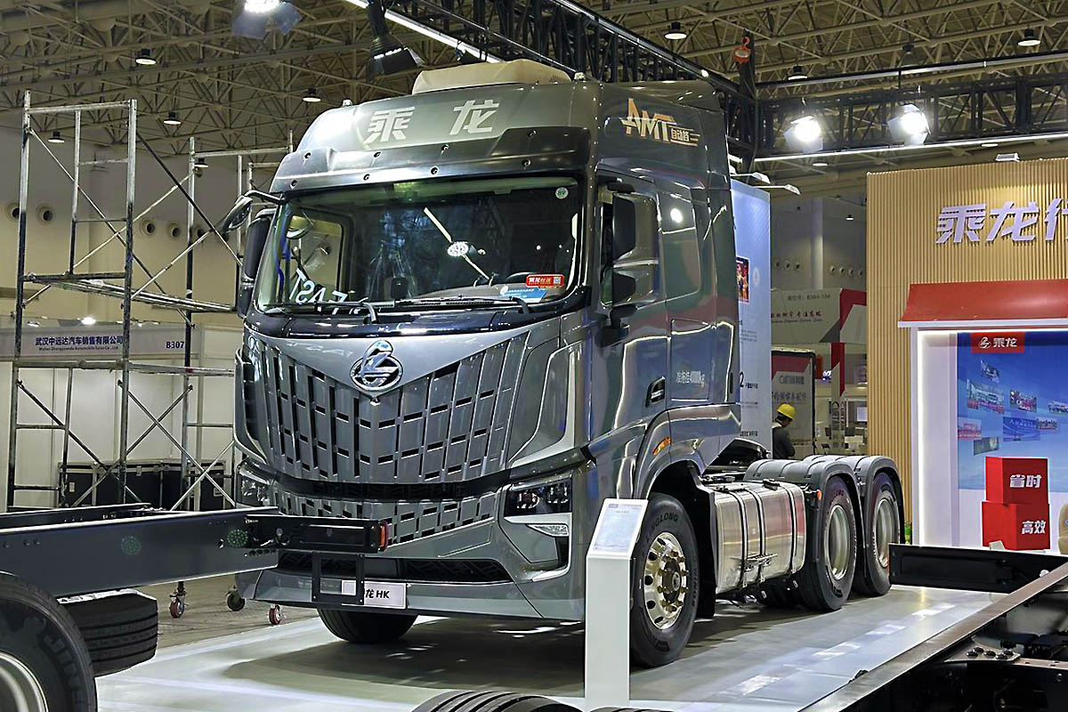 Еще один водородный седельный тягач Zaihe FCEV 4×2 показал на выставке бренд Zaihe Auto. Электромобиль производится компанией Higer, но продается как Zaihe KLQ4183FCEV1. Модель сочетает водородные топливные элементы, буферную литий-ионную батарею CATL, современную электронику и электропривод. Это уже серийный промышленный продукт, а не экспериментальный прототип. Газообразный водород в объеме 51 кг хранится в баллонах под давлением 35 МПа. Этого количества хватает для проезда 600 км с одной заправки. В ведущие мосты инсталлированы синхронные электродвигатели Fast Gear TZ270XYSF-SZF801 на постоянных магнитах. Каждый электромотор выдает 150 кВт номинальной мощности и на пике – 265 кВт. Емкость аккумулятора не превышает 60 кВт⋅ч. Колесная база электромобиля – 5120 мм. Снаряженная масса транспортного средства составляет 12,5 тонны. На фоне растущей водородной инфраструктуры в центральном Китае эта модель имеет реальные шансы занять свою нишу в сегменте экологически чистых магистральных перевозок.