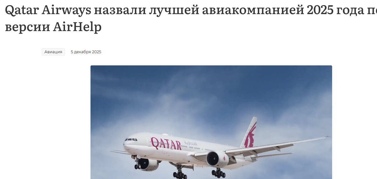 Сразу скажу, что наш национальный перевозчик проигрывает почти по всем параметрам не сказать, что с очень большим перевесом, но даже с учетом определенных ограничений на данный момент, мы вряд ли догоним и перегоним, так как Аэрофлот региональная авиакомпания. Личный опыт перелета из Москвы в Доху и обратно. Катарские авиалинии (Qatar Airways) названа лучшей авиакомпанией 2025 года, по версии нескольких рейтинговых компаний на основе мнений пассажиров На Эмирейтс я летал несколько раз в Дубай 10-15 лет назад, был тогда в восторге, судя по рейтингу, они в списке лучших. Было опрошено более 22 млн. пассажиров по всему миру: Аэрофлот в ТОП-10 предсказуемо не попал и примерно находится в районе пятидесятого места из 350, вполне неплохой результат. В прошлом году я тестировал и Хайнаньские авиалинии Аэрофлот раньше был более интересным (если так можно сказать), а сейчас все больше экономят на всем и ценник один из самых высоких в России Понятно, что Катарские авиалинии не лоукостер, деш