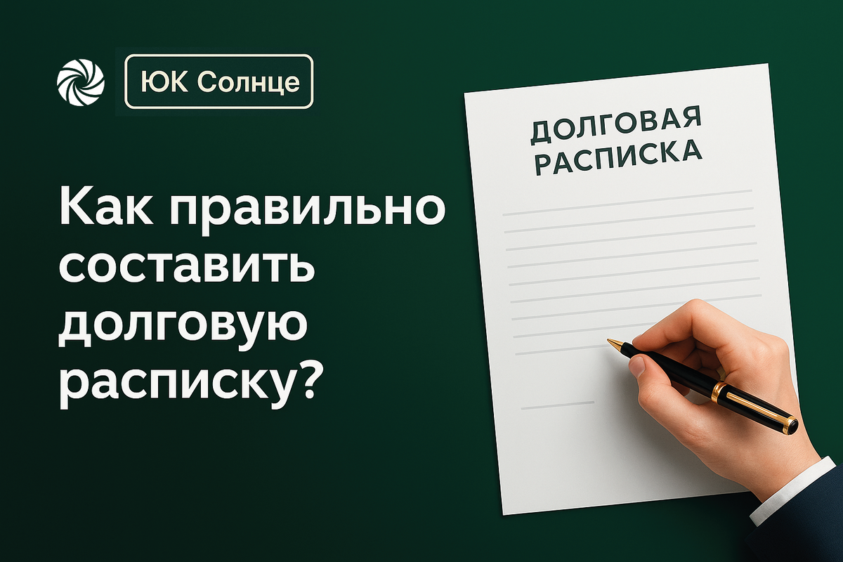 Долговая расписка - простой и эффективный способ подтвердить, что один человек занял деньги у другого. Но в судах регулярно всплывают расписки, которые написаны «на коленке» и не защищают ни кредитора, ни заемщика. Разберем, какие пункты обязательно включить, чтобы расписка имела юридическую силу. Расписка пишется от руки заемщиком. Это плюс: почерк можно идентифицировать. В документе желательно отразить: Если вы хотите подстраховаться, юрист ЮК «Солнце» может помочь вам подготовить текст расписки или проверить уже готовый вариант.Подробнее о нашей работе - на сайте uksolnce.ru. По закону простая письменная форма достаточна. Но: Это дороже, но иногда оправдано, если сумма долга значительная. Нужно ли присутствие свидетелей