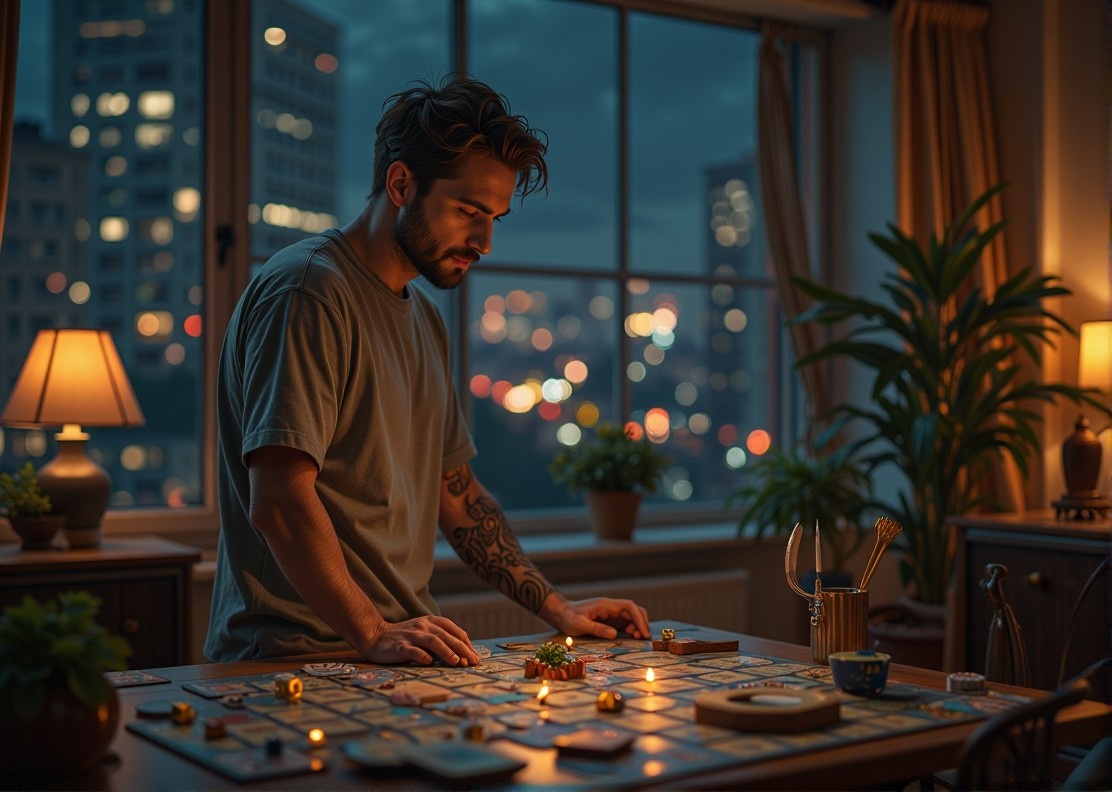 Андрей стоял у своего окна, держа в ладони кружку с остывшим кофе. На стекле отражалось его лицо — усталое, с лёгкой небритостью, в серой футболке, давно растянувшейся на вороте. За спиной тихо тикали часы в гостиной, а на столе оставались неубранные коробки с настольной игрой — той самой, которую они когда-то купили вместе с Натой.