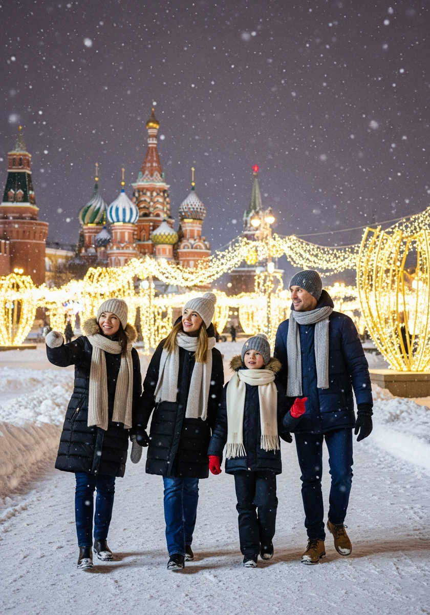 Красная площадь в новогоднем убранстве — визитная карточка праздничной Москвы. Здесь работает легендарный ГУМ-каток, проходят рождественские ярмарки и создается та самая атмосфера зимней сказки в самом центре столицы.