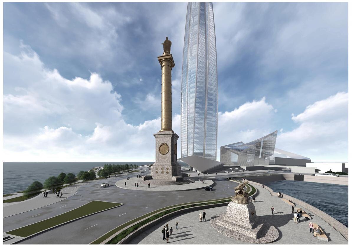 Два года назад на Градостроительном совете обсуждалась идея установки триумфального столпа рядом с Лахта Центром в честь победы России в Северной войне. Архитекторы в целом одобрили проект, однако возникли сомнения относительно выбранного для колонны места.