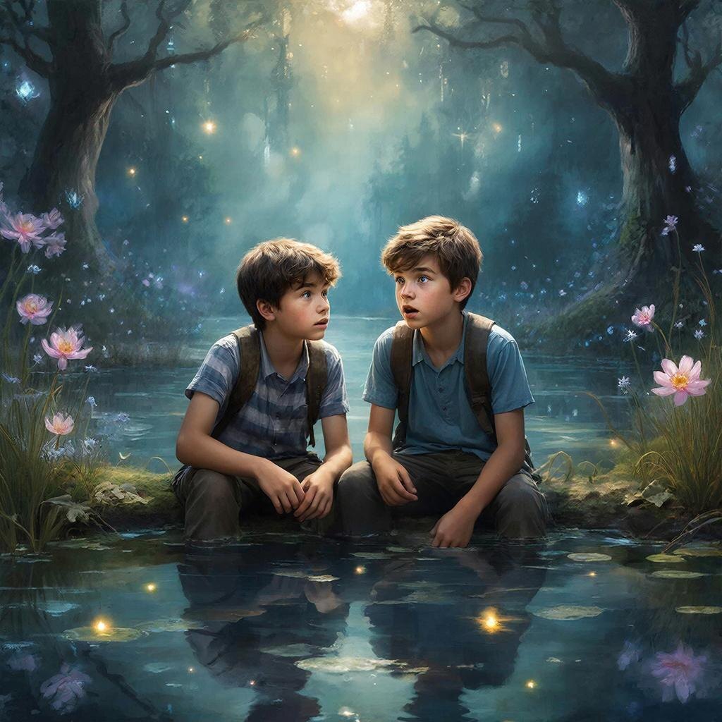 После встречи с королем Коин и Айден вернулись в парк, их сердца были полны разочарования. Они сидели на берегу пруда, глядя на золотые рыбки, которые лениво плавали среди водорослей.