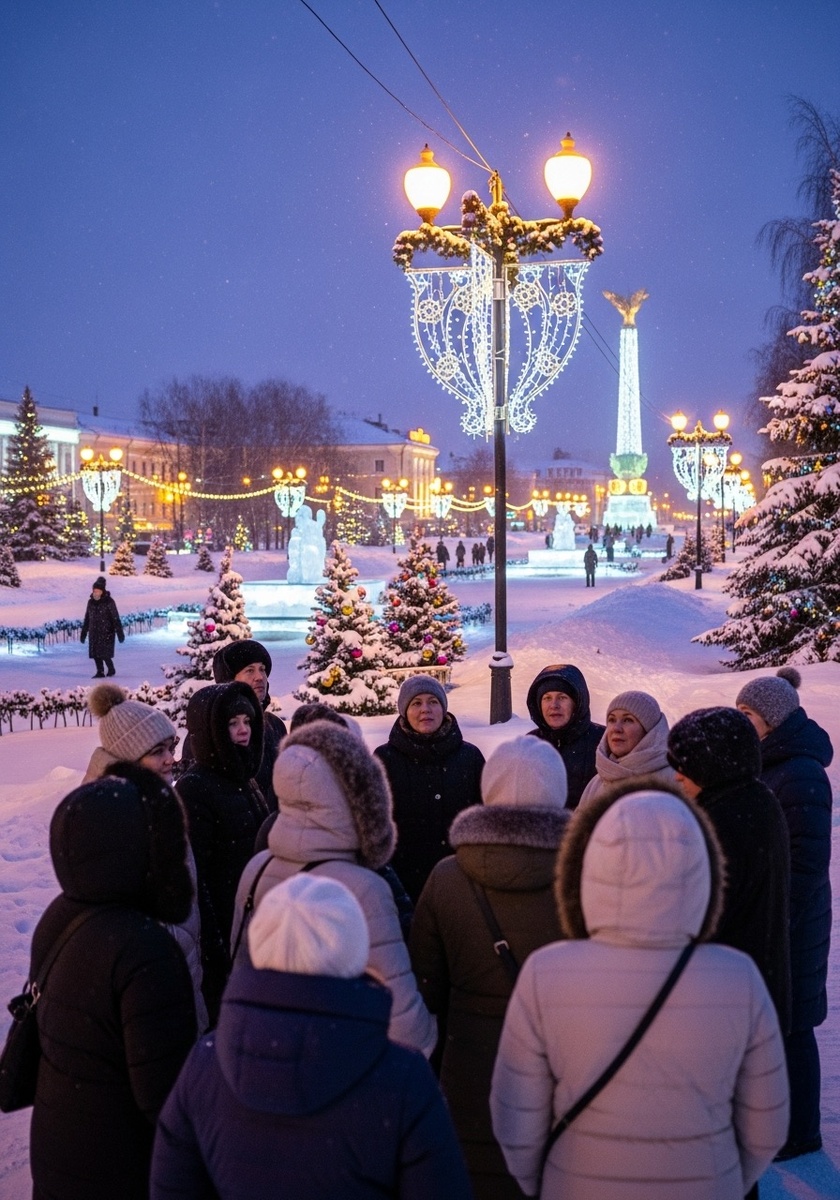 - Центральная площадь с новогодними мероприятиями (15 минут пешком).