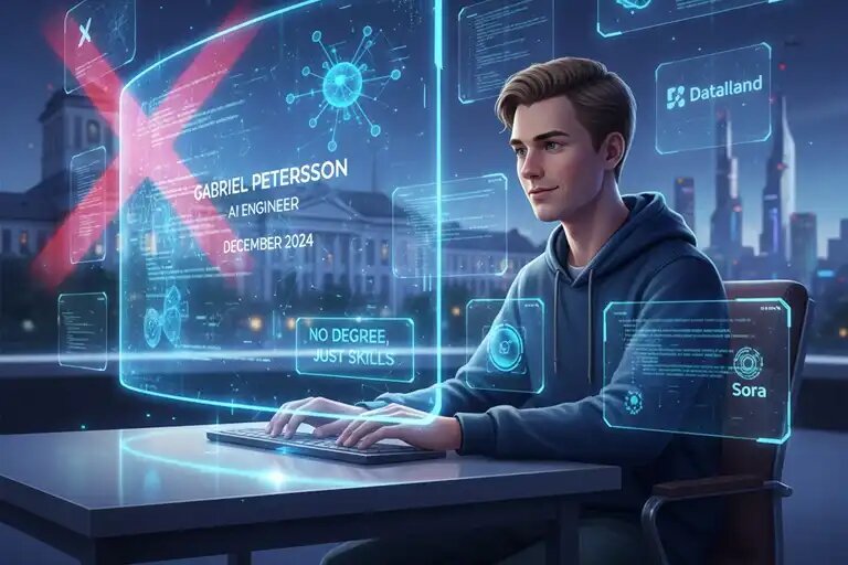 История Габриэля Петерссона — пример того, как искусственный интеллект меняет правила игры. В 2019 году он бросил школу в Швеции ради работы в небольшом стартапе. Чтобы научиться программировать, Петерссон обратился к нейросетям: задавал ChatGPT вопросы, генерировал код, исправлял ошибки и постепенно разбирался в фундаментальных принципах. Эта стратегия принесла результат. Уже в декабре 2024 года Петерссон присоединился к команде OpenAI Sora, заняв должность, которая раньше считалась доступной лишь обладателям докторских степеней. До этого он успел поработать инженером-программистом в Midjourney и Dataland. «Университеты больше не обладают монополией на фундаментальные знания. Любые знания можно просто получить из ChatGPT», — говорит Петерссон. По его словам, главное — не диплом, а практические навыки и готовность создавать результат. «Компании просто хотят зарабатывать деньги», — отмечает он, добавляя, что ценность специалиста определяется умением решать задачи, а не формальными квали