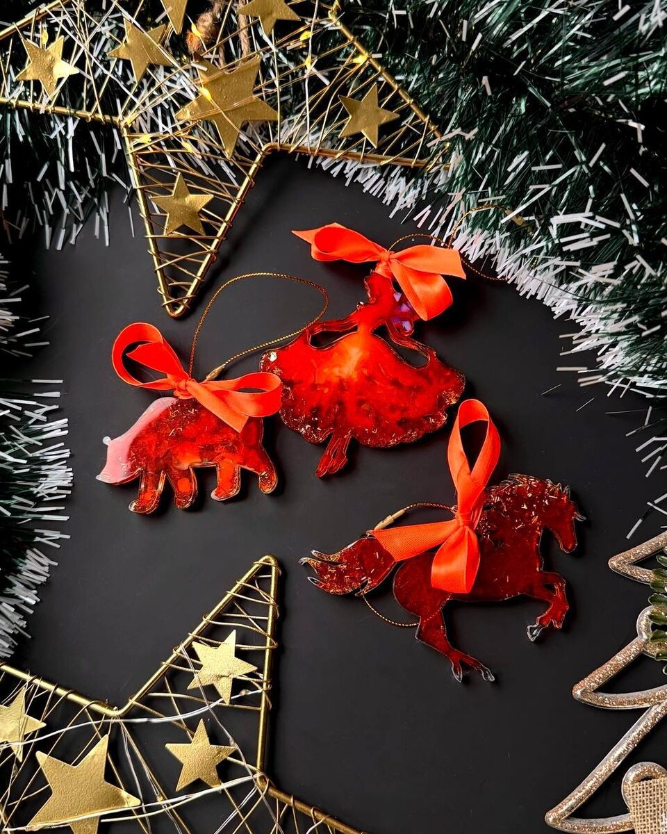 Для создания праздничных изделий из смолы нужно подготовить следующие материалы:
