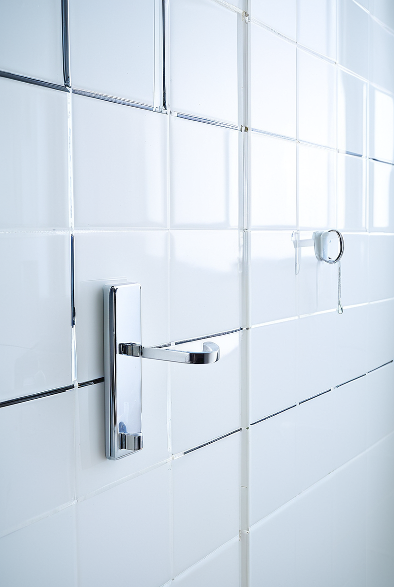 - Кафельная плитка и стекло: Это идеальная гладкая поверхность для крепления без сверления. Промойте участок мыльной водой и полностью высушите его тканью без ворса. Затем, используя изопропиловый спирт, тщательно обработайте место монтажа. Это гарантирует, что крючок на липучке не отвалится.