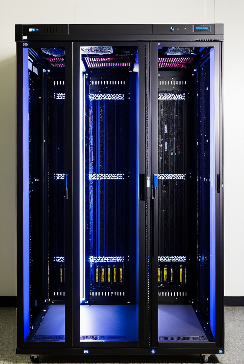 Тип передней двери определяет эффективность охлаждения. Стеклянная дверь, как правило, из закаленного тонированного стекла, позволяет визуально контролировать индикаторы оборудования и лучше изолирует шум. Она подходит для коммутационных узлов в офисах. Однако для серверных с высокой плотностью оборудования предпочтительнее дверь с перфорацией. Высокий процент перфорации (до 86%) обеспечивает свободный приток холодного воздуха к технике. Задняя дверь почти всегда перфорированная для отвода горячего воздуха.