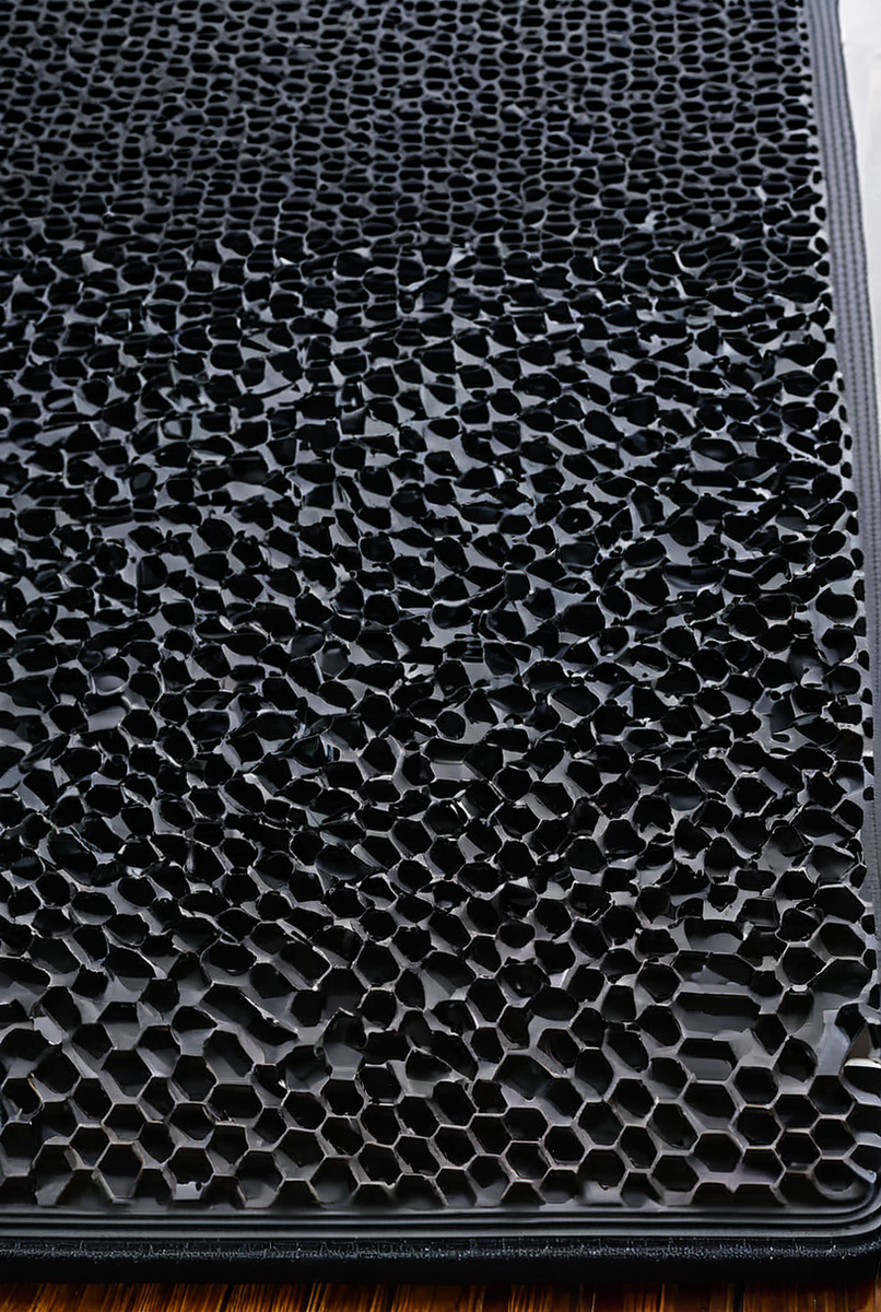 - Ячейки (соты): Это особенность автоковриков EVA. Глубокие ячейки, или соты, работают как резервуары, собирая жидкость и мусор. Поверхность ковра остается относительно сухой, а грязь не разносится обувью по салону.