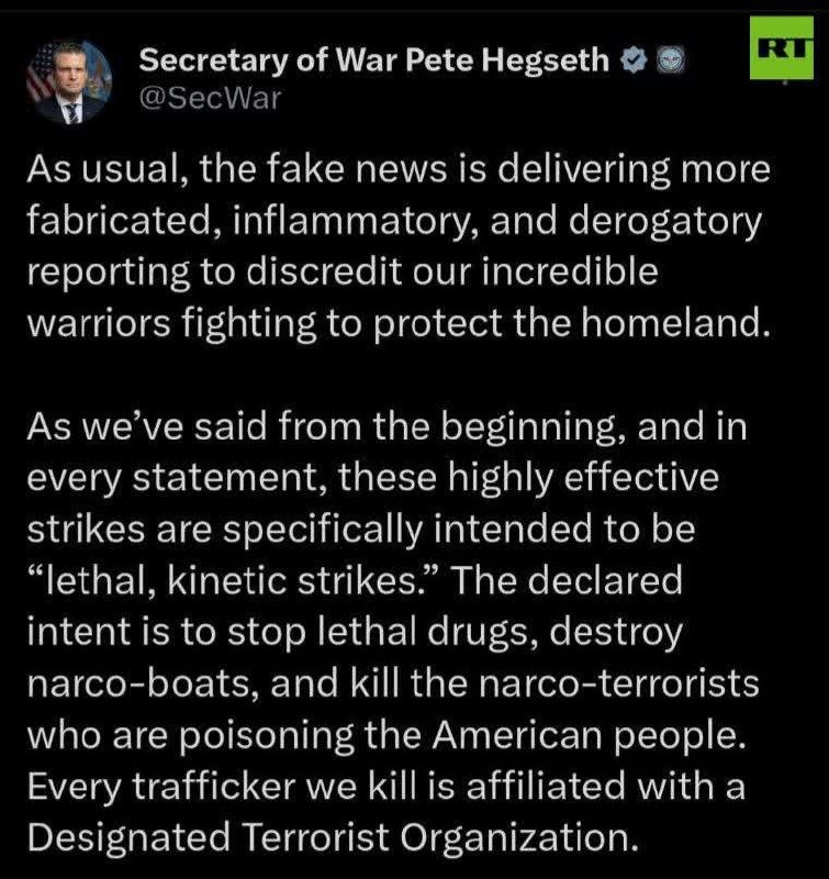 Hegseth roasts WaPo story as 'fabricated, inflammatory, derogatory' Piece claims Def Sec gave a 'KILL everybody' order after a missile strike hit a narco-boat near Trinidad A 2nd strike was launched while survivors clung to the wreckage