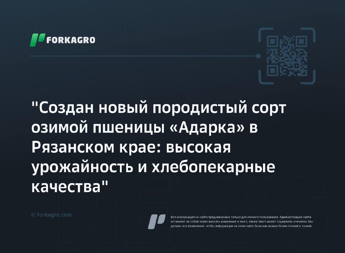 "Создан новый породистый сорт озимой пшеницы «Адарка» в Рязанском крае: высокая урожайность и хлебопекарные качества" В ФГБНУ ФНЦ ВИХ создан новый сорт озимой пшеницы "Адарка" в Рязанском крае. Сорт в Госреестре, урожайность - до 10 т/га. "Адарка" зимостойкая, с хлебопекарными качествами. Научный семинар представил сорт аграриям. Сорт рекомендуется для центральных районов, обещает урожайность до 100 ц/га. "Виола" из института же демонстрирует выдающиеся результаты по урожайности и устойчивости к ветру в Рязанской области. Перейти к источнику