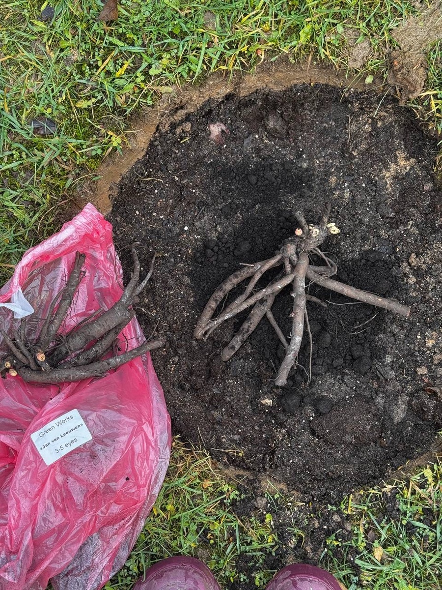 Счастью нет предела, получила свои долгожданные пионы.Закупка длинной в полгода( от заказа до получения). Посадка глубокой осенью отличается от посадки ранней осенью, только поливом. Глубина посадки (ГЛАВНОЕ ПРАВИЛО):Почки возобновления (красные "глазки") должны быть на 3-5 см ниже уровня земли,это касается и для ИТО-гибридов. У них почки находятся на корневище, и если их оставить на поверхности, они будут мерзнуть зимой и сохнуть летом, и пион не будет цвести. Можно использовать планку для контроля, я на глаз, не заморачиваюсь. Процесс: На дне ямы , если есть риск застоя воды— (тяжелая глина, высокие грунтовые воды) —ДЕЛАЕМ ХОЛМИК.Сажаем на возвышение, чтобы корневище было выше общего уровня земли и не вымокало. Если почва легкая, дренированная, воды глубоко —сажаем БЕЗ ХОЛМИКА.Холмик — это не прихоть, а технический прием для отвода воды от корневой шейки в проблемных условиях,можно сделать холмик из обычной земли. ✅Ставим деленку, расправляем корни. ✅Засыпаем, аккуратно уплотня