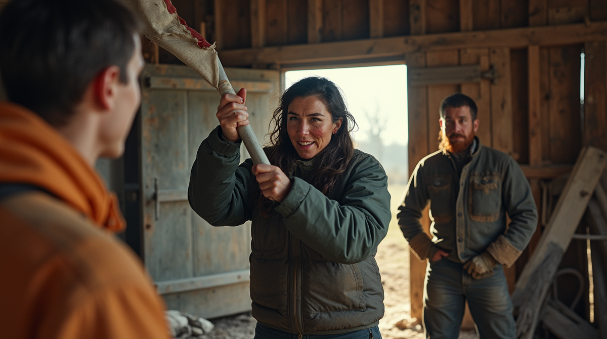 – Онна, ты чё?! – прохрипел он, отползая к стене сарая.