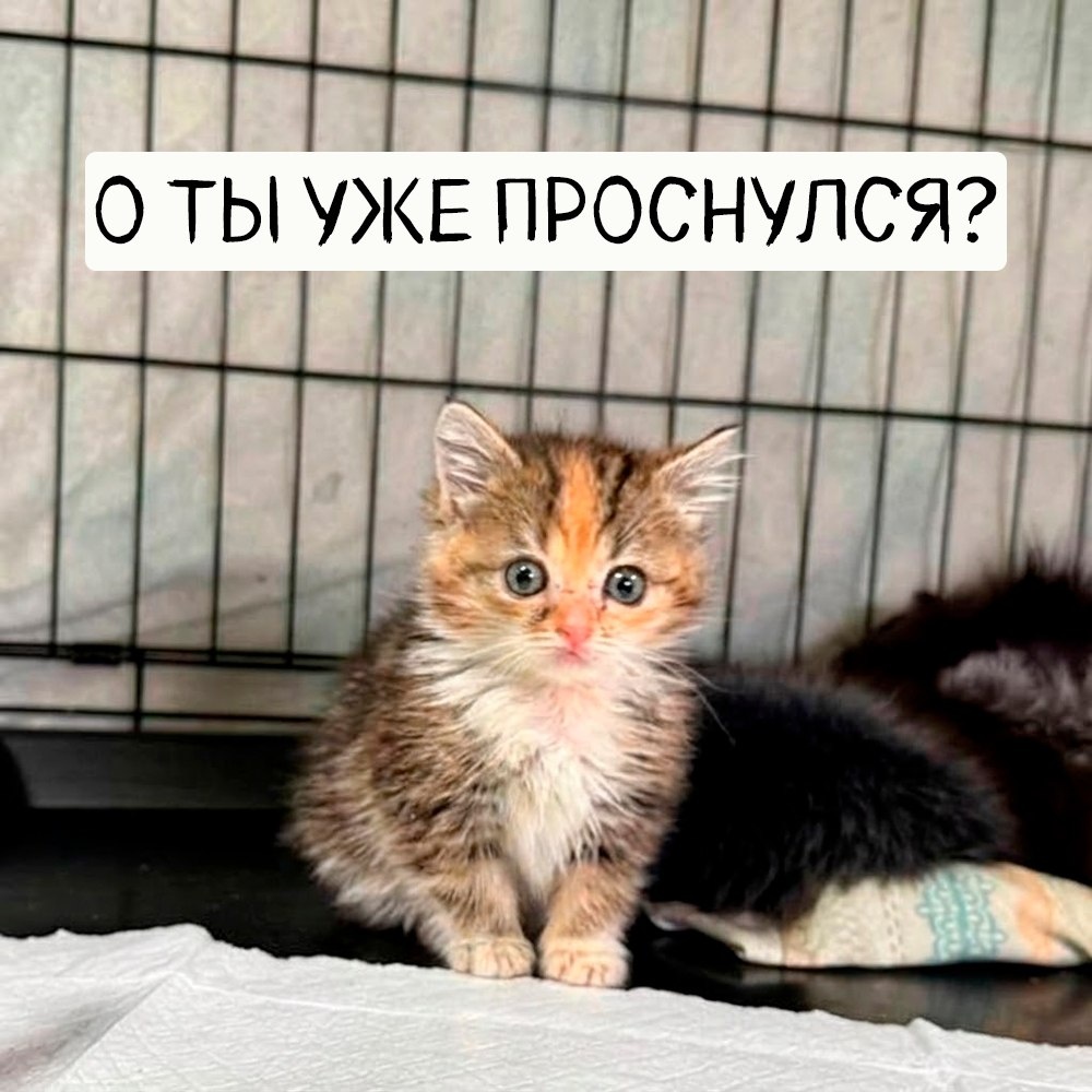 Кажется, кто-то уже проснулся и вышел на утренний осмотр людей 🐱 Этот крошечный шансят только учится жить без мамы: кушать, играть и доверять рукам. А первым делом с утра он проверяет — вы уже проснулись и улыбнулись сегодня хоть раз? Пусть этот взгляд будет вашим нежным будильником. Скажите этому малышу «доброе утро» в комментариях, а если хотите поддержать его и других хвостиков приюта — нам всегда очень помогают корм, наполнитель и любая посильная поддержка ❤