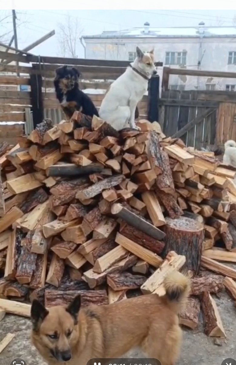Наш новый работник переколол все дрова. Еще бы, у него такая команда поддержки 🐶🐶!