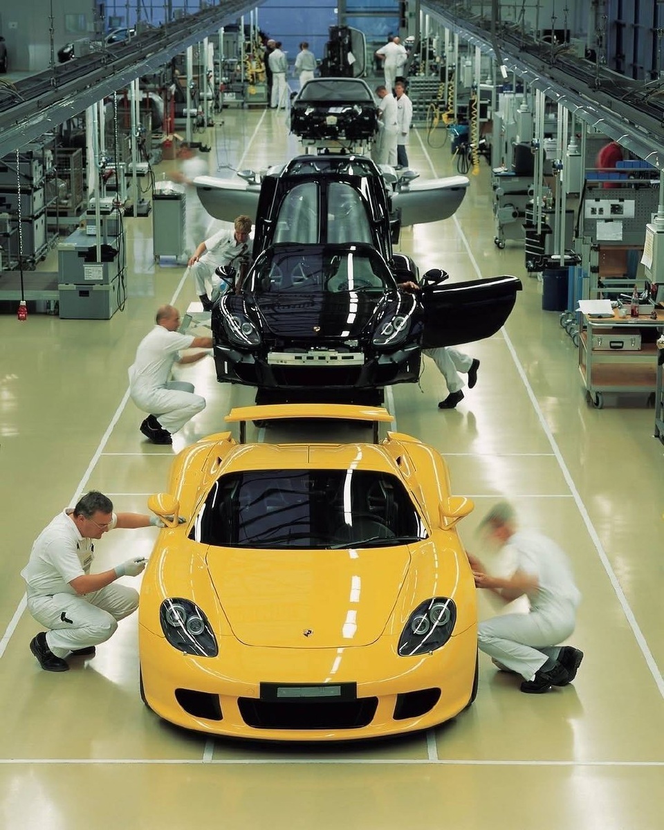 Рождение легенды под белым светом цеха. Лейпцигский завод Porsche в начале нулевых был местом, где каждый Carrera GT проходил путь от голого карбона до готового суперкара буквально в руках мастеров. С 2003 по 2006 год здесь собрали всего 1270 экземпляров — тираж, который сегодня кажется почти нереальным для машины такого уровня. Каждый узел подгоняли вручную: от карбоновых панелей до тормозных механизмов и той самой атмосферной V10, родом из несостоявшегося болида Le Mans. Цена в €452 000 была лишь цифрой — настоящей ценностью становилась точность, тишина цеха и люди, которые создавали автомобиль как произведение искусства. Это был короткий момент в истории Porsche, который уже не повторится.