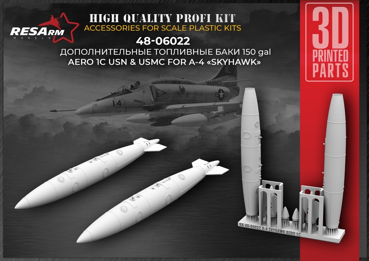 RESArm выпустили дополнительные топливные баки 150 gal для модели самолета Douglas A-4 Skyhawk в 1/48 масштабе.