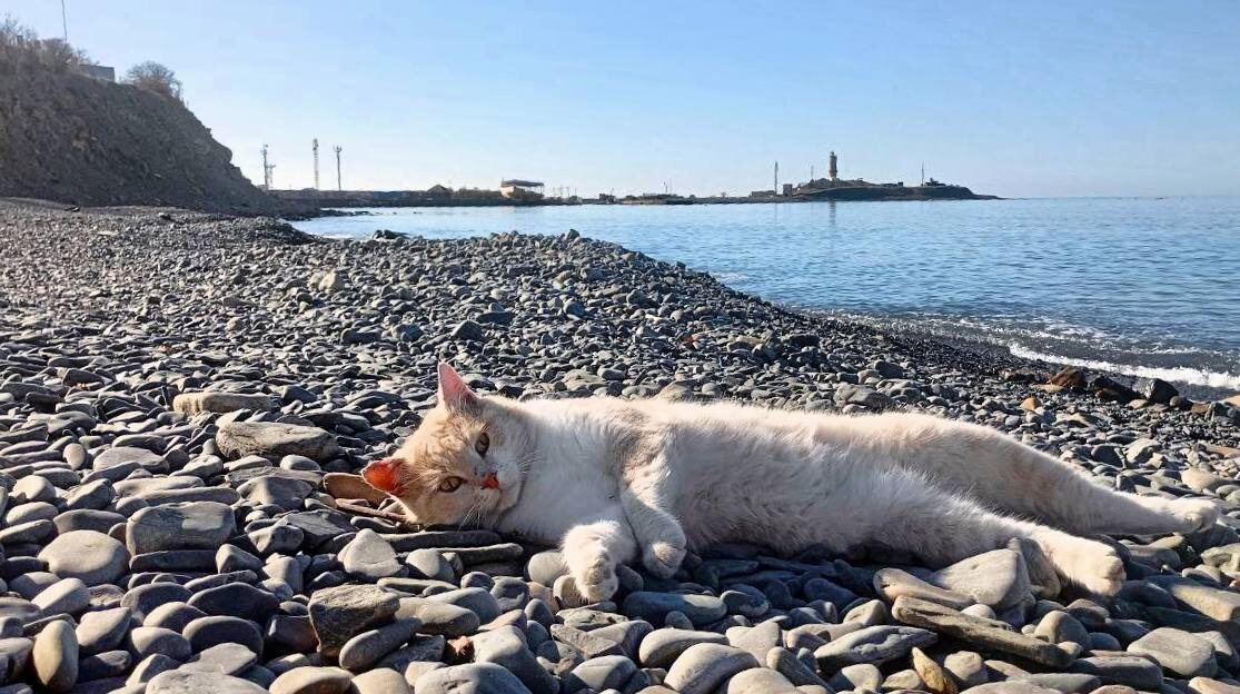 А что? Солнце яркое, камни тёплые, воздух свежий. И даже конец ноября располагает к ровному загару🐱