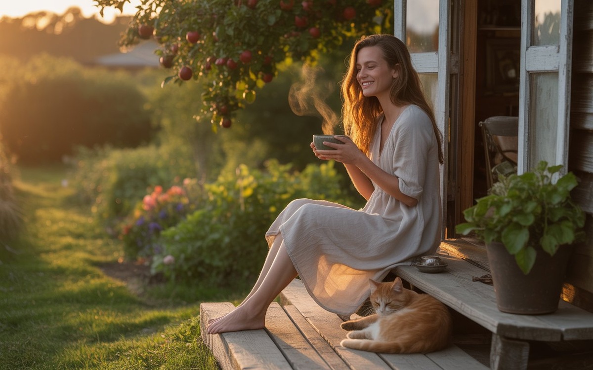 Сейчас вечер. Я сижу на веранде, пью чай. Рыжик дремлет рядом. Андрей обещал приехать завтра, привезёт рассаду — хочу огород разбить весной.